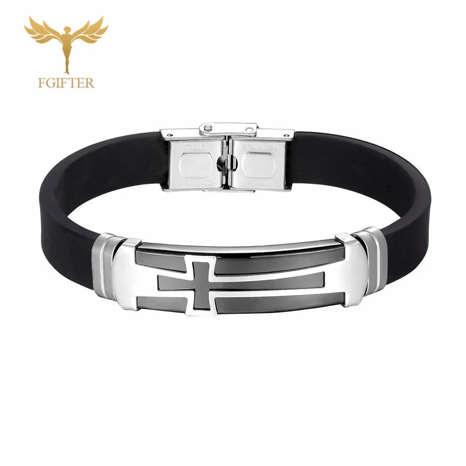 Christian Cross Bracelet – Silicone Wristband with Stainless Steel Buckle